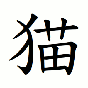 猫 - спрощена форма, яка зараз є стандартною в континентальному Китаї та Японії